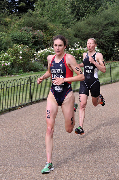 The Dextro Energy ITU World Championship Series races are always exciting. But mix in the fact that this was a test event for the 2012 Olympics in London and Olympic qualifying was on the line for a raft of contenders from around the world, the pressure and the electricity got a turbo boost of epic proportions. When Olympic qualifying is factored in, surprises reign. Gwen Jorgenson's 2nd place finish and Olympic qualification was the biggest shock. But so was the fact that long time US stars Sarah Haskins and Laura Bennett came out on the short end with disappointing races. They were topped by Jorgensen and the hard working Sarah Groff, who took U.S. slot number 2 with a 7th place finish and was beaming with quiet pride afterward. More surprises included the fact that the 1-2-3 finish a few weeks ago of the three Aussie Emmas at Hamburg would not be repeated, as Jackson (4th) Snowsill (5th) and Moffatt (15th) all had off days.