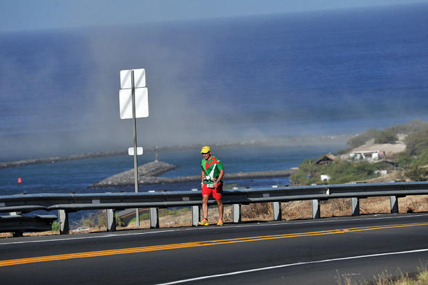 The wild winds cutting through the pass at Kawaihae threw up a huge cloud of dust over the coastline behind 28th place finisher Andres Trasloheros of Mexico on his way to a 9:15:23 run.