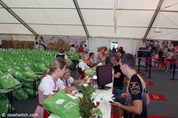 The expo at the 2014 Datev Challenge Roth opened its door today and 5,500 athletes in this 30th anniversary event started to pick up their packages. Plus the big Erdinger party was tonight.