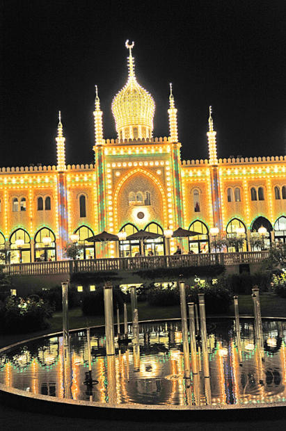 The Moorish Nimb restaurant at Tivoli Gardens lights up the night.