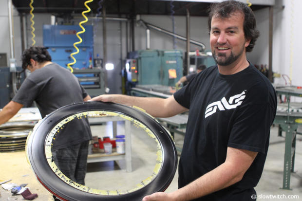 The Double Barrel shock assembly process keeps several guys busy, including John Fennell.