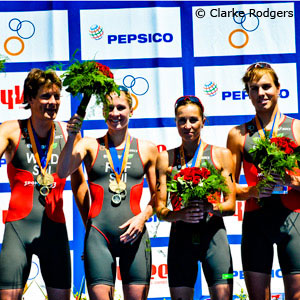 Erin Stories (Carolina Gliders) chases Lindsey Jerdonek (Cleveland Rock and Roll), who opened a big lead at the end of the 2nd leg.