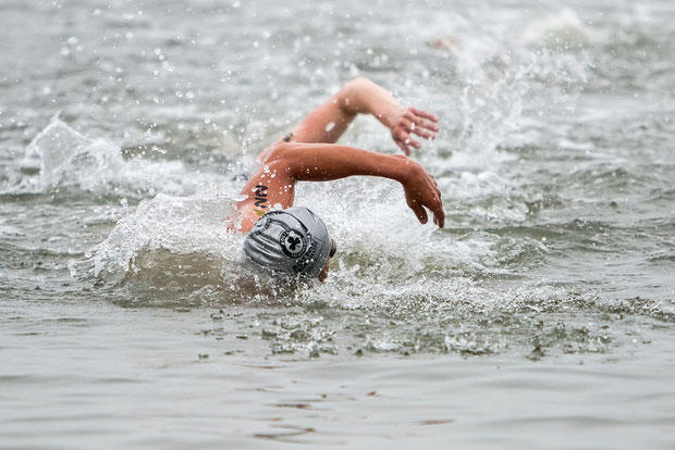 Angela Naeth emerged from the water in her Roka wetsuit, pedaled off aboard her Scott Plasma, and ran home in her Hoka running shoes (send the check to my P.O. Box, Angela).