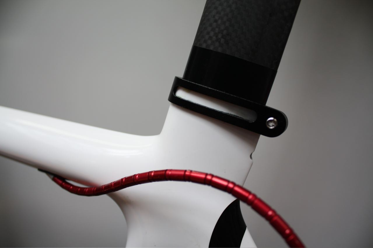 – aerobars: Oval Concepts A710 UnderOnly SCCS clip-on stem faceplate with single-bend carbon extensions