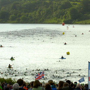 Mette Pettersen Moe of Norway led the swim in 49:52, followed by Dede Griesbauer (+18 seconds), Natascha Schmitt of Germany (+2:25) and top contenders Mullan (9th place +5:21), Astrid Ganzow of Germany (10th and +5:22) and Nina Kuhn of Germany (19th and +7:07).