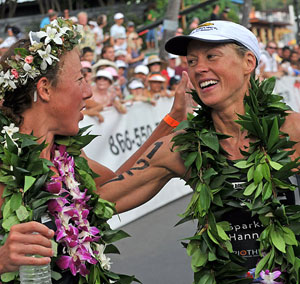 Sandra: It was about 5 month after I gave birth that I finished a local half Ironman in 4th place only some minutes behind three top international women. I was still breastfeeding, 6 kg overweight, not much training, suffered during the run and wanted just to try if I could come back in triathlon soon. And there I was. Crossing that finish line pushed me towards my goals last year. But the most important result was definitely my 3rd place in Kona in 2008. Kona is the race with just the best of the best racing there and even a good place in another Ironman race is not as high in ranking as in the world champs. And there is that feeling, coming towards the finish line on Alii drive in 3rd position…