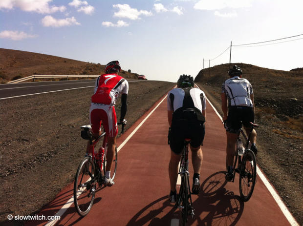 We came to Fuerteventura for the launch of the new Cervelo P5 and will post details about this very cool bike tonight at midnight Eastern standard time. Meanwhile though enjoy these impressions from the Playitas resort in Fuerteventura where we ran into quite a few Pro triathletes, including but not limited to Michael and Andreas Raelert, Dirk Bockel, Frederik Van Lierde, Caroline Steffen, Jonas Colting, Rasmus Henning and Javier Gomez, and noticed that this place is swarming with triathletes from all over Europe and athletes from various other sports.