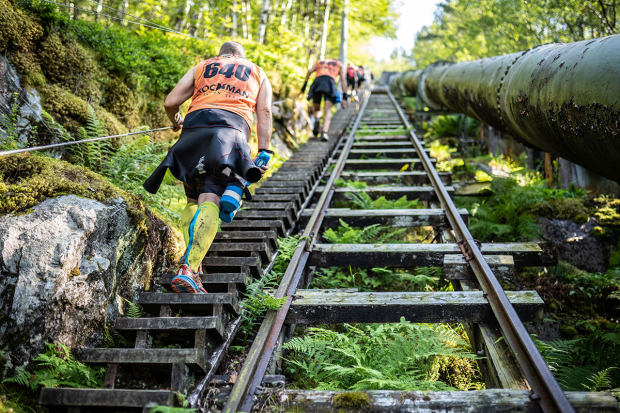 Teams on the earlier mentioned Flørli section of the course and this is indeed tough. There is not much running here and Spaniards Francisco Javier Merencio Perez and Oscar Pastor Garcia follow other teams up the more than 4,444 steps.