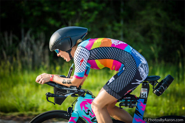 Alicia Kaye of the U.S. biked a pro women’s 7th-fastest 4:55:34 split on her way to 4th place.