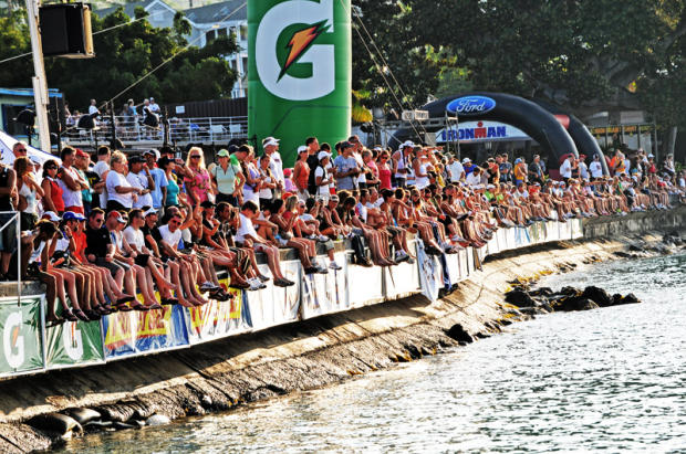 Tension, impatience, relief and sheer exuberance fill the air when the waiting is done and it's time to slip in to the waters of Kailua Bay and await the cannon's blast. For triathletes, the dawn of Ironman Hawaii is birthday, Christmas Day, graduation day, wedding day all wrapped into one big aerobic test of physical readiness and personal character. Awaiting the start, some cope by meditation, others make a few jokes, others retreat into a wall of silent focus before they go out into the blue sea and bright yellow sun to confront the inevitable dark places within themselves that scream "Quit!"