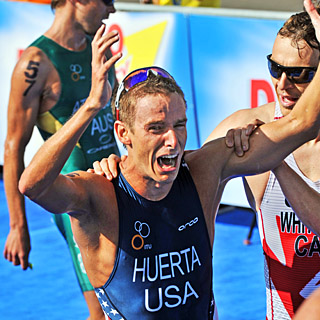While Huerta has some successes – an Under 23 National title in 2006, a 5th and a 7th at 2010 World Cups in Monterrey and Ishigaki, finishing top American with a 25th place at the London WCS race and a silver medal at the Pan Am Games last year and a stay at the USAT National Training Center at Colorado Springs, his Olympic chances did not seem to be great after a 42nd place finish at the Sydney WTS round early this year where his 10k run split was 33:32 which was another time zone away from top flight ITU racers.