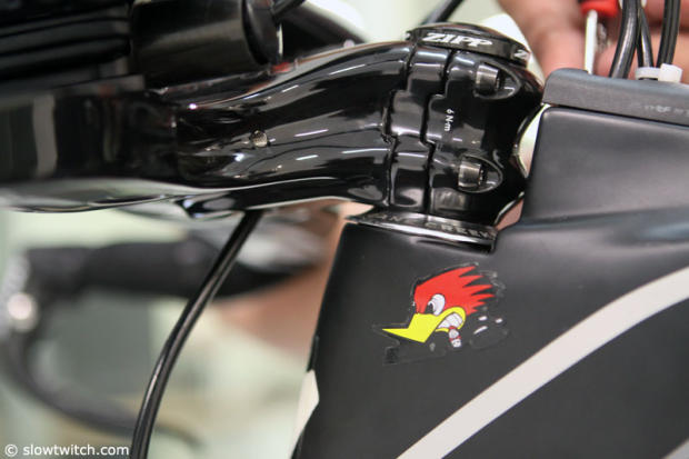 Final adjustments on the S-Works Shiv with a few folks looking on.