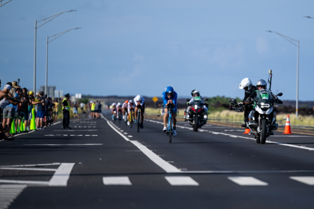 After some initial jockeying, the early miles of the bike saw smaller packs — likely in part due to the enhanced enforcement of position fouls.