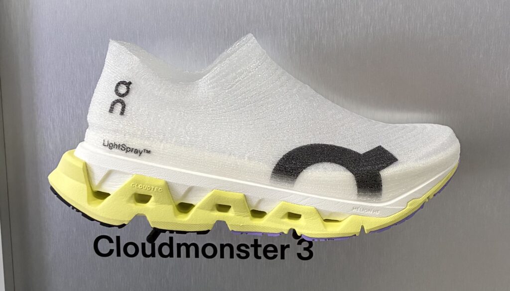 At the On Running booth, I got the chance to test out the Cloudmonster Hyper 3 LightSpray. Triathlon fans will be familiar with On’s LightSpray shoe design, as Gustav Iden and Kristian Blummenfelt wore the Cloudboom Strike LightSpray in Nice at the 2025 IRONMAN World Championship. The Cloudmonster is just the second shoe from On to feature this LightSpray tech, which is a slip-in design and hugs your foot like a sock instead of a traditional running shoe with a tongue and laces.