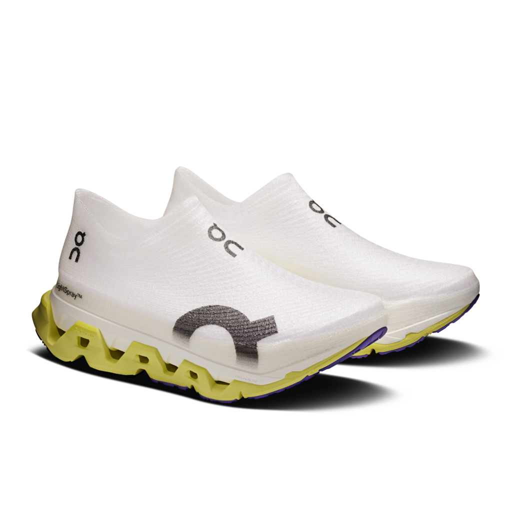 Finally, there is the LightSpray Cloudmonster Hyper 3. Fans of triathlon may be familiar with On’s LightSpray design, as Norway’s Kristian Blummenfelt wore LightSpray shoes (the Cloudboom, not the Cloudmonster) to carry him to wins in multiple IRONMAN races in 2025, as well as podium finishes at both the IRONMAN and 70.3 world champs. The LightSpray Cloudmonster Hyper 3 has a laceless design and pulls on like a sock, although it is surprisingly secure.