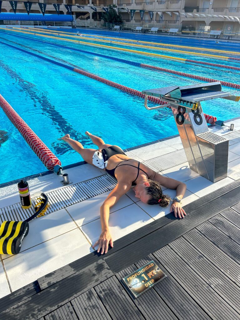 It’s not as sexy as trying to cut five seconds off your 100 m time, but maintaining health is always the primary goal. A coach can help you incorporate more shoulder work in your gym training, nail down a pre- and post-swim routine of activations and stretching, and you may want to consider getting a weekly, or mid-camp, massage to aid recovery.