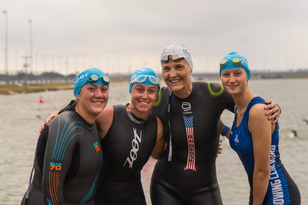 Christy “voluntold” the likes of 2008 Olympian Jarrod Shoemaker, IRONMAN champion Lisa Roberts and her husband John, and Olympic bronze medalist Paige Zemina Northcutt (pictured above with three first-timers) that they were going to be mentoring new athletes, and suddenly an ad hoc program was underway.