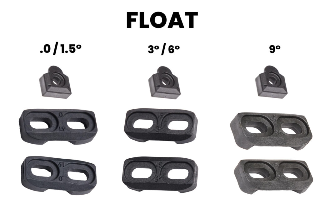 The super-light cleats are available in three different sets that offer five different options when it comes to float. “Float,” in this case, is the amount your shoe will be able to pivot while locked into the pedal. The cleats are designed to be installed with the number up (readable) to achieve the desired float on the pedal.
