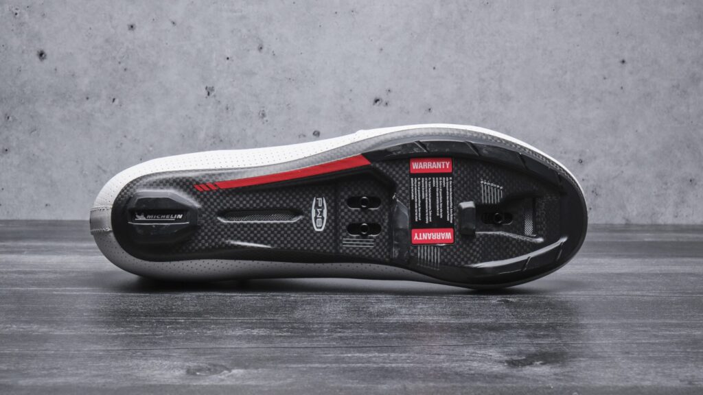 Designed for performance, the upper features a close, precision fit that is designed to lock the foot in place for maximum power transfer and support. The forefoot is built with added volume, providing extra space to keep the foot comfortable during longer rides. The construction gives the shoe a snug, slipper-like feel, enhancing both stability and comfort. Wrapped in genuine leather, the material is meant to combine durability with breathability thanks to its fully perforated design, allowing continuous airflow which keeps feet cool and dry.