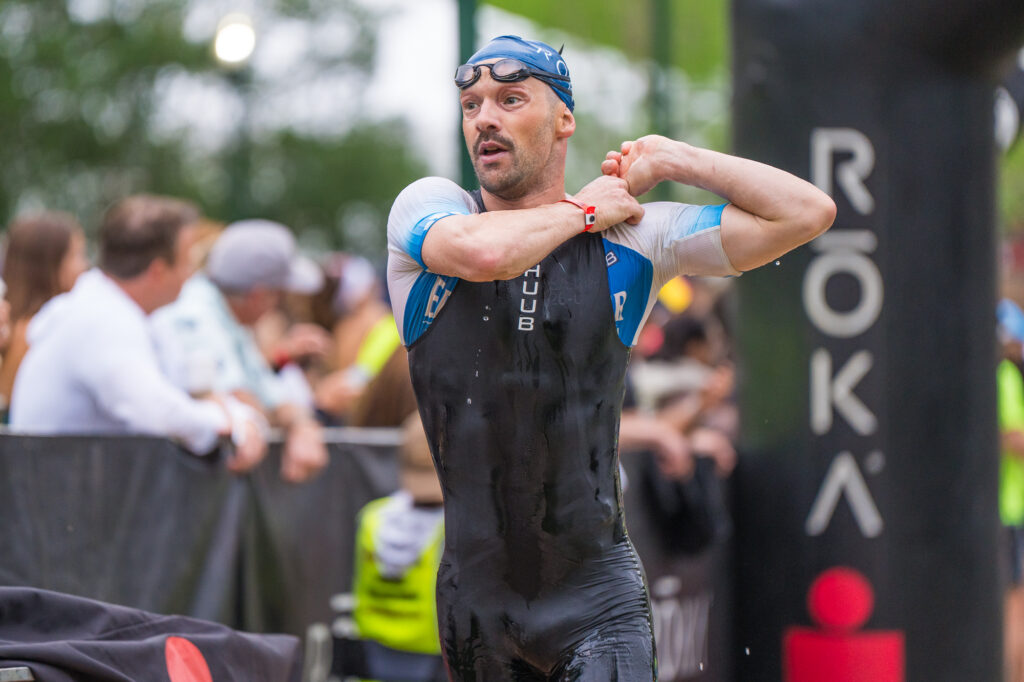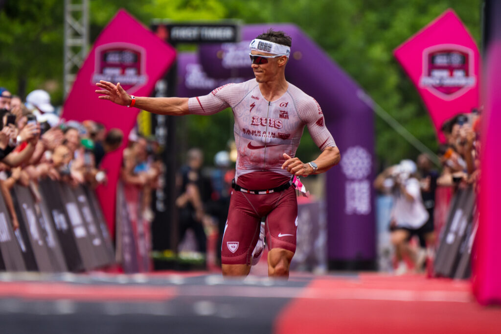Yeah, I’m very, very stoked. It was a tough day out there on the bike. I felt like we were chasing for the first 100 km — I decided to put on the calf sleeves in T1, which maybe cost me a few seconds, and I ended up on the wrong side of the two groups and had to chase for that first 100 km. I didn’t really recover on the last 80 km on the bike either, and the last 10 to 15 km was quite rough. I lost a minute to the guys again.