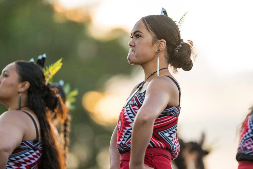 When the waka arrives on the beach, Ngāti Tūwharetoa wāhine will emulate the mahi (strength) of the tāne (men) and challenge the female athletes to push themselves beyond their normal boundaries. With their kahui maunga (chiefly mountains) at their backs, their moana (inland sea) at their feet and Aotearoa’s most significant awa to their side (Waikato River), they will uphold the traditions of their forefathers and mothers in a demonstration of mana whenua (custodianship) and aroha through a demonstration of Ahai (rakau/paddle moves), wero (challenge), and haka.