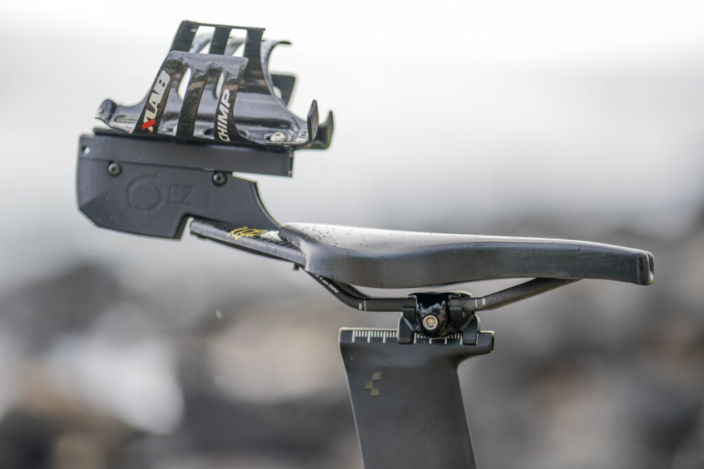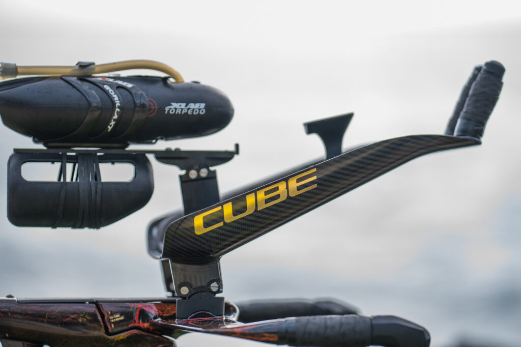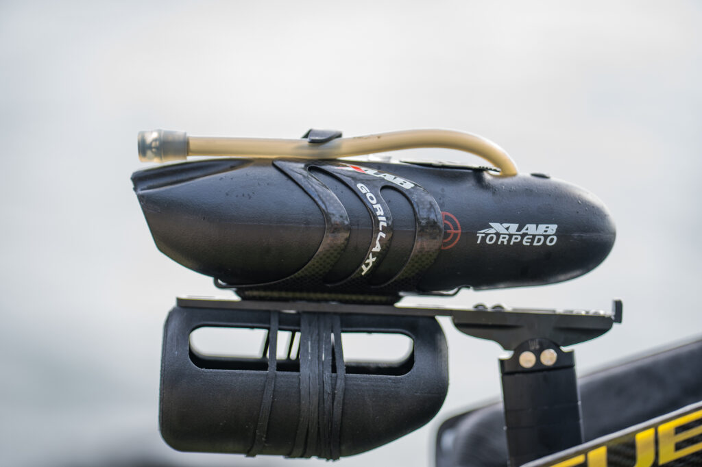 Front Hydration System | 1 XLab Torpedo bottle with Gorilla XT cage, plus Cube in-frame hydration. Cube also designed a special carrier for Charles-Barclay’s gels |