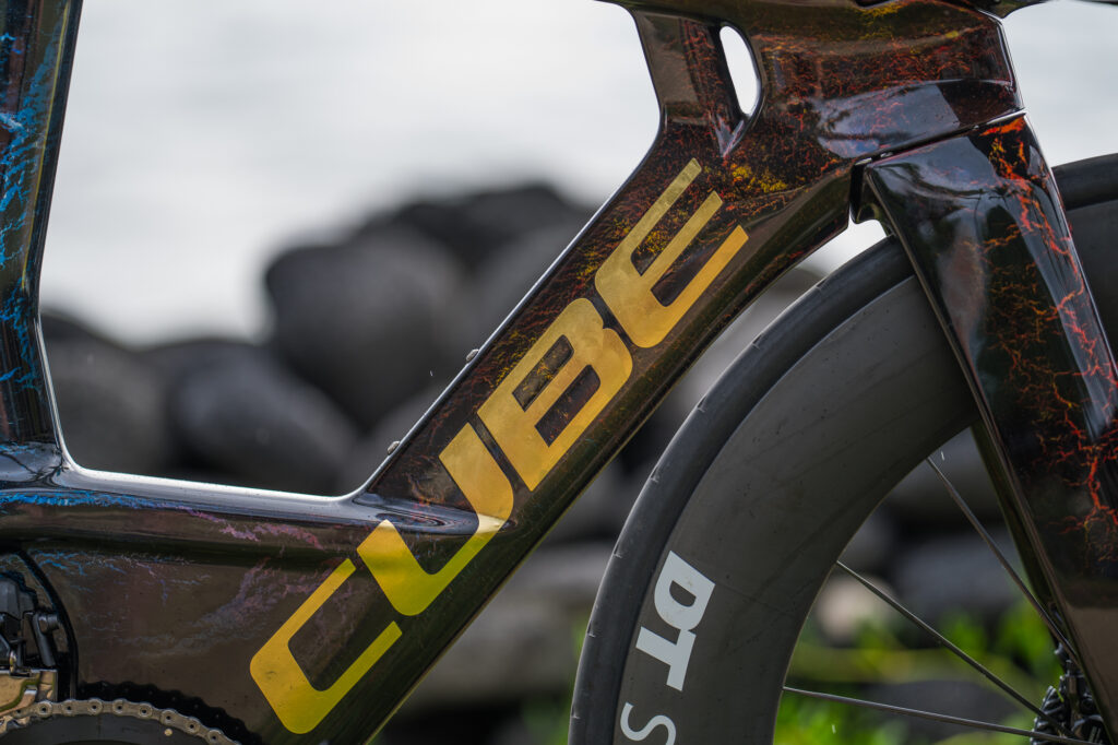 Lucy Charles-Barclay won the Ho’ala Training Swim in Kona earlier this week, and although the IRONMAN World Championship is still a few days away, she has already secured her second win of the week, as she has what has to be the coolest bike design on the Big Island. She is riding her go-to steed, the Cube Aerium C:68X — an already nice bike that the team at Cube has made even cooler with a Kona-inspired paint job.