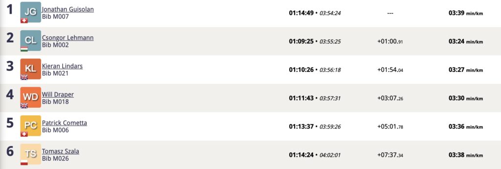 Out on the run Guisolan appeared to have things under control for the win (he would cross the line in 3:54:24), but behind there was some action for the final two spots on the podium. Lehmann made the most of his long-distance debut by hanging tough for second (3:55:25), with Linda’s rounding out the top-three in 3:56:18.