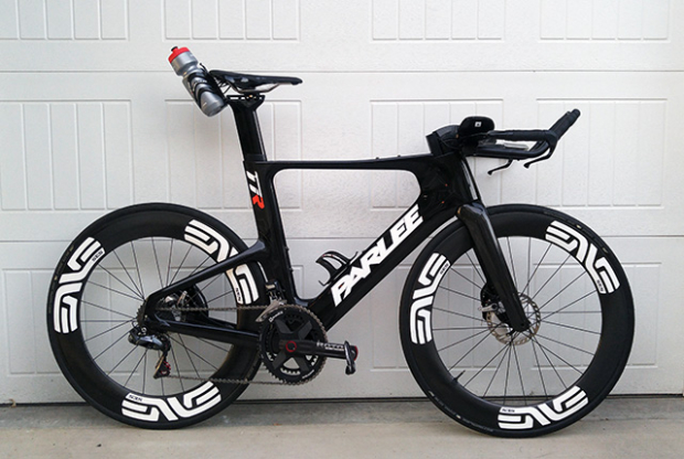 Heather Wurtele recently partnered with Parlee Cycles and moving forward she will be racing on a Parlee TTiR disc bike. The same is true for her husband Trevor and the two well liked and fast Canadians have virtually matching bikes. Heather Wurtele is 6'2" tall and weighs 150 pounds. And she describes herself as long legs and short torso. But here now is closer look at this very fine looking machine of hers.