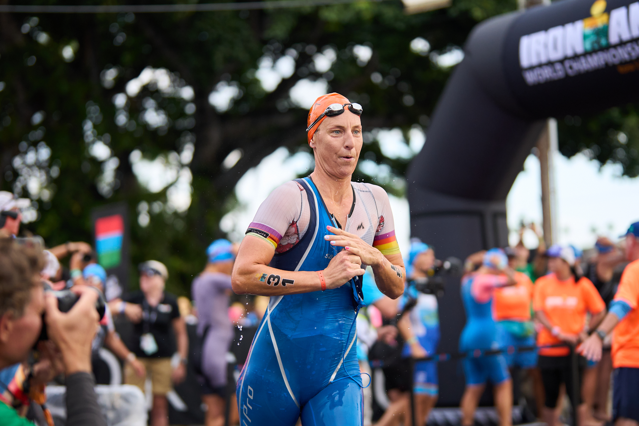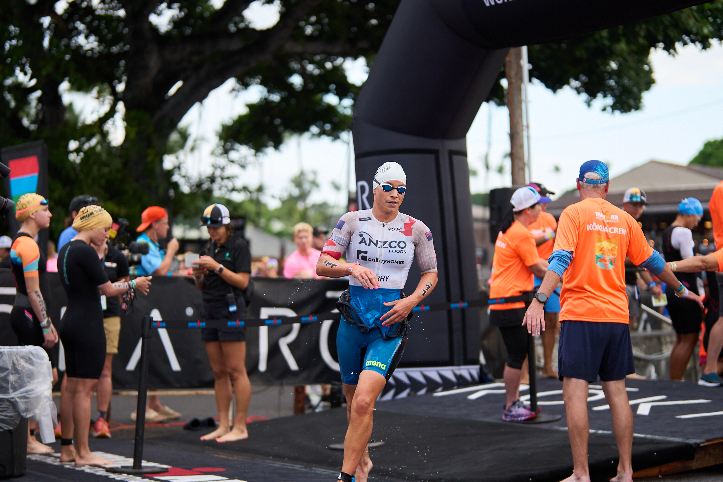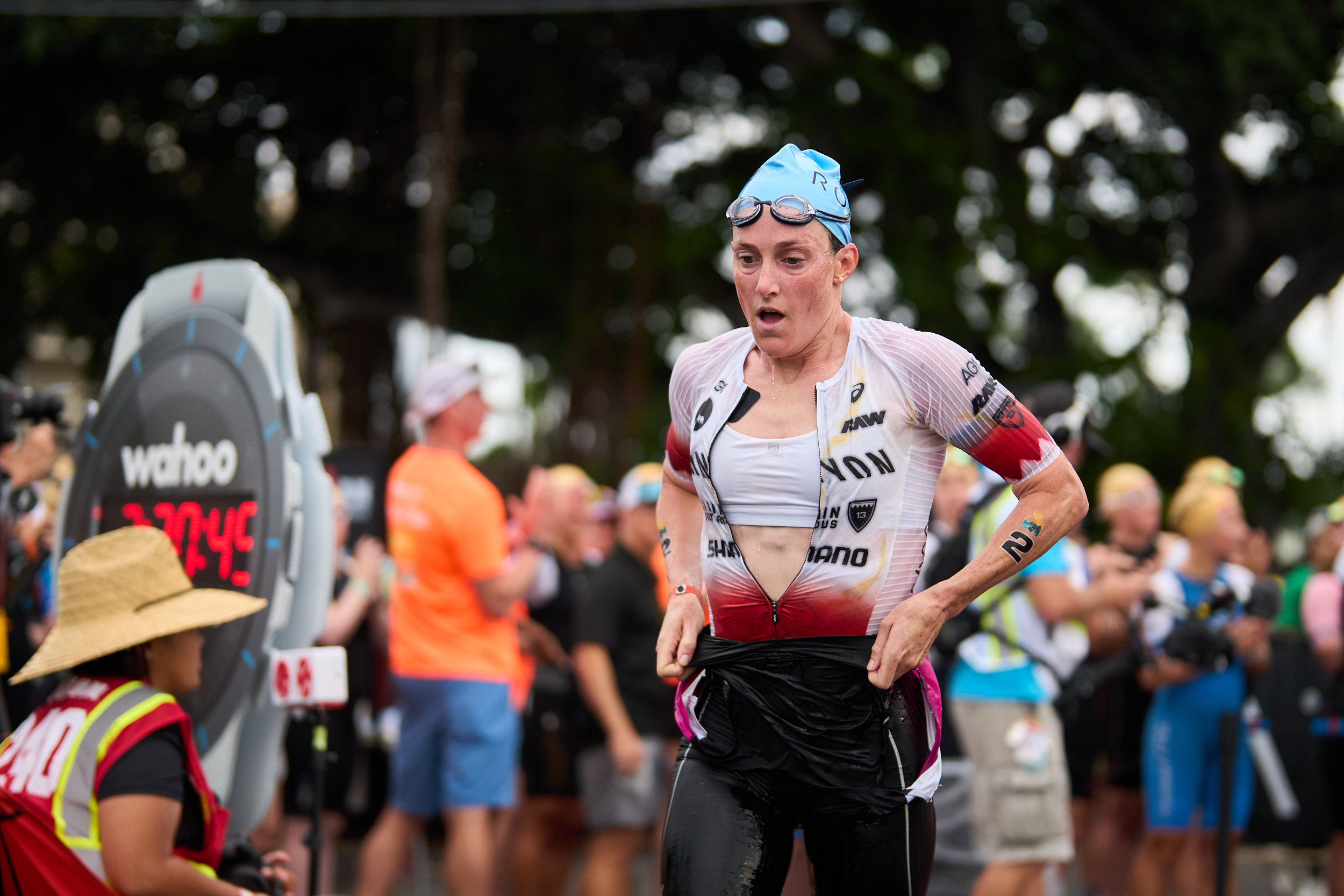 Told you we’d see the new suit! Perterer wore the updated PZ4TX in Kona. Like its predecessor, there’s unique side paneling to improve body positioning, as well as the unique blend of four hydrophobic fabrics to reduce drag.