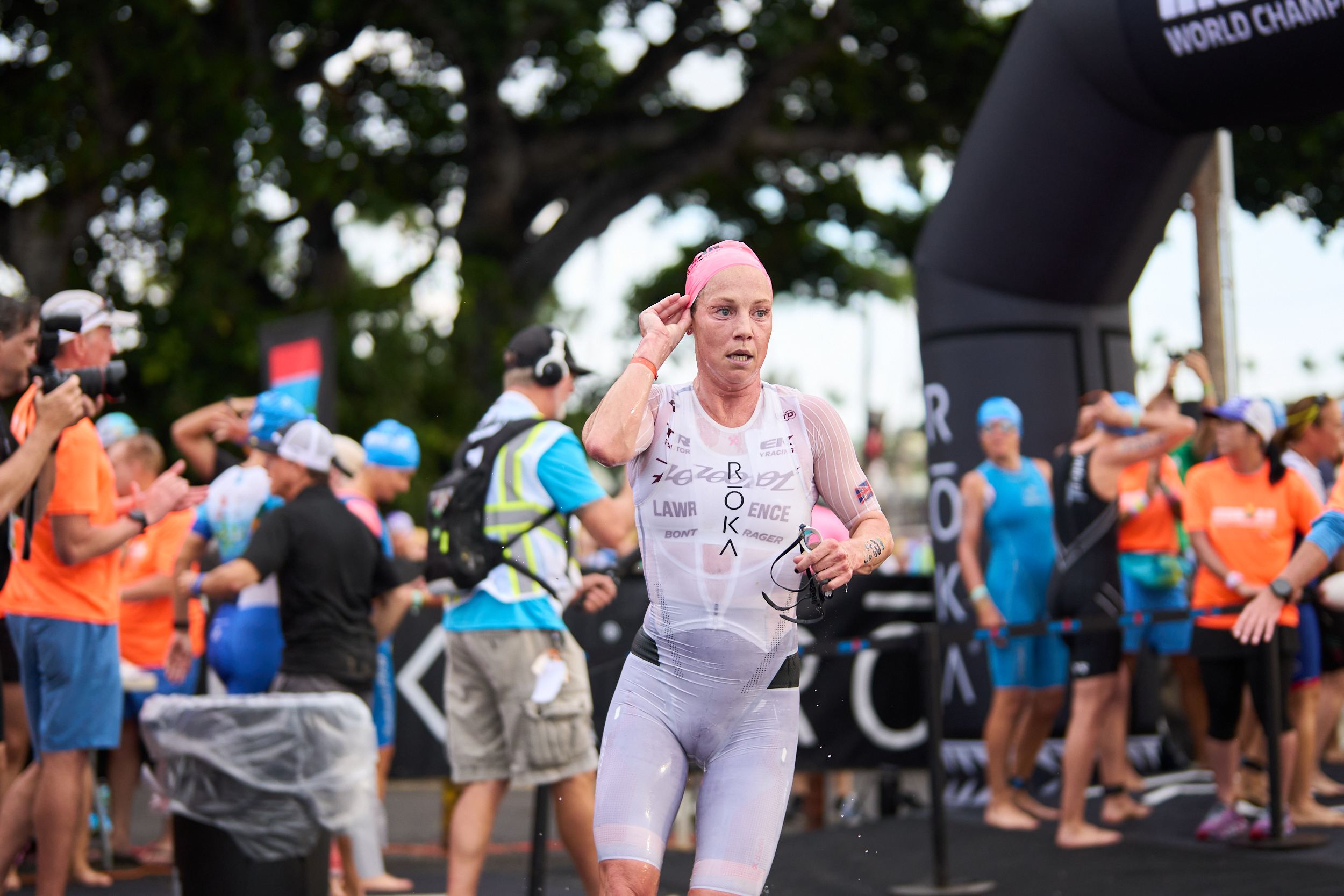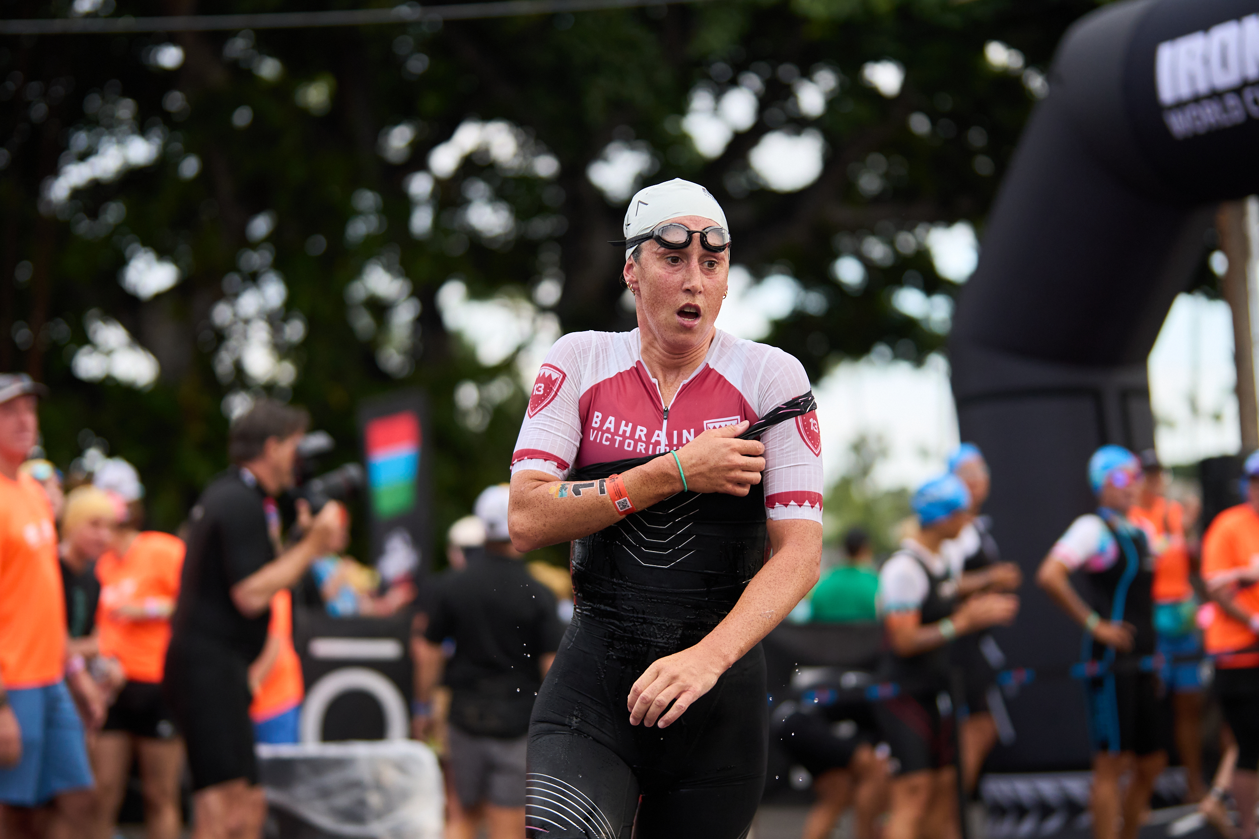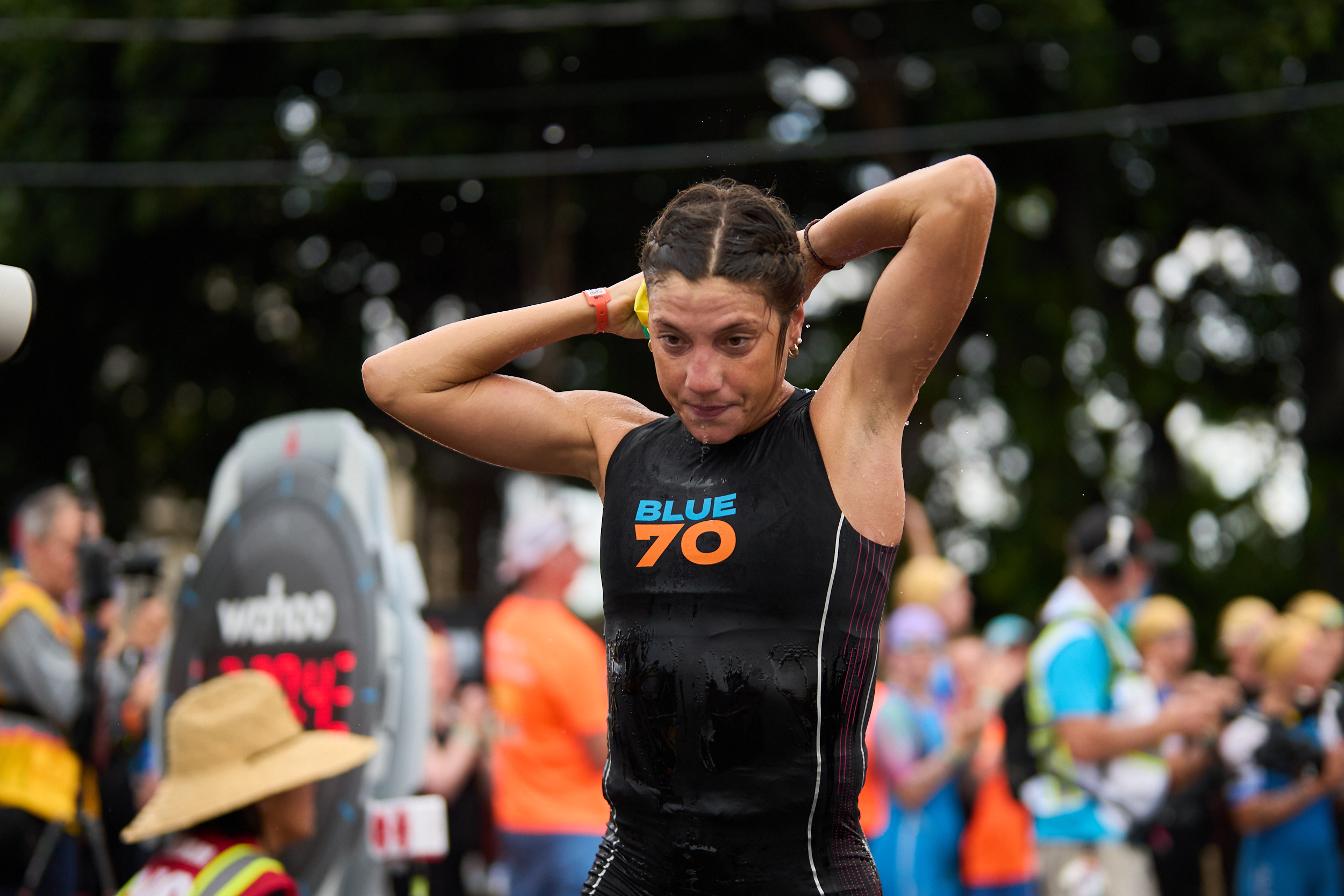 Told you we’d see the new suit! Perterer wore the updated PZ4TX in Kona. Like its predecessor, there’s unique side paneling to improve body positioning, as well as the unique blend of four hydrophobic fabrics to reduce drag.